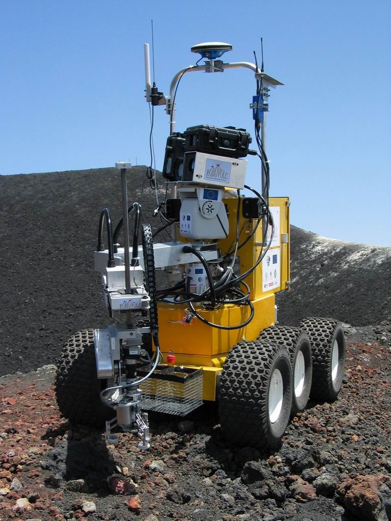 In order to achieve these goals, new algorithms and software for autonomous and semi-autonomous navigation of a robot in unstructured environments have been developed. For autonomous navigation, we intend that the robot be capable of reaching a given position in the volcanic area autonomously and automatically perform the tasks required to perform the measurements. In the case of very difficult or dangerous situations (e.g. proximity to lava flows or fissures), the robot will be tele-operated and able to act in a semi-autonomous way. In this case, by using a specifically designed user interface, an operator will be able to drive the robot effectively from a safe location. For semi-autonomous use, we intend that the robot will have the capability of autonomously selecting and executing some sub-tasks, e.g. position and speed of individual wheels, measurement operations, etc.